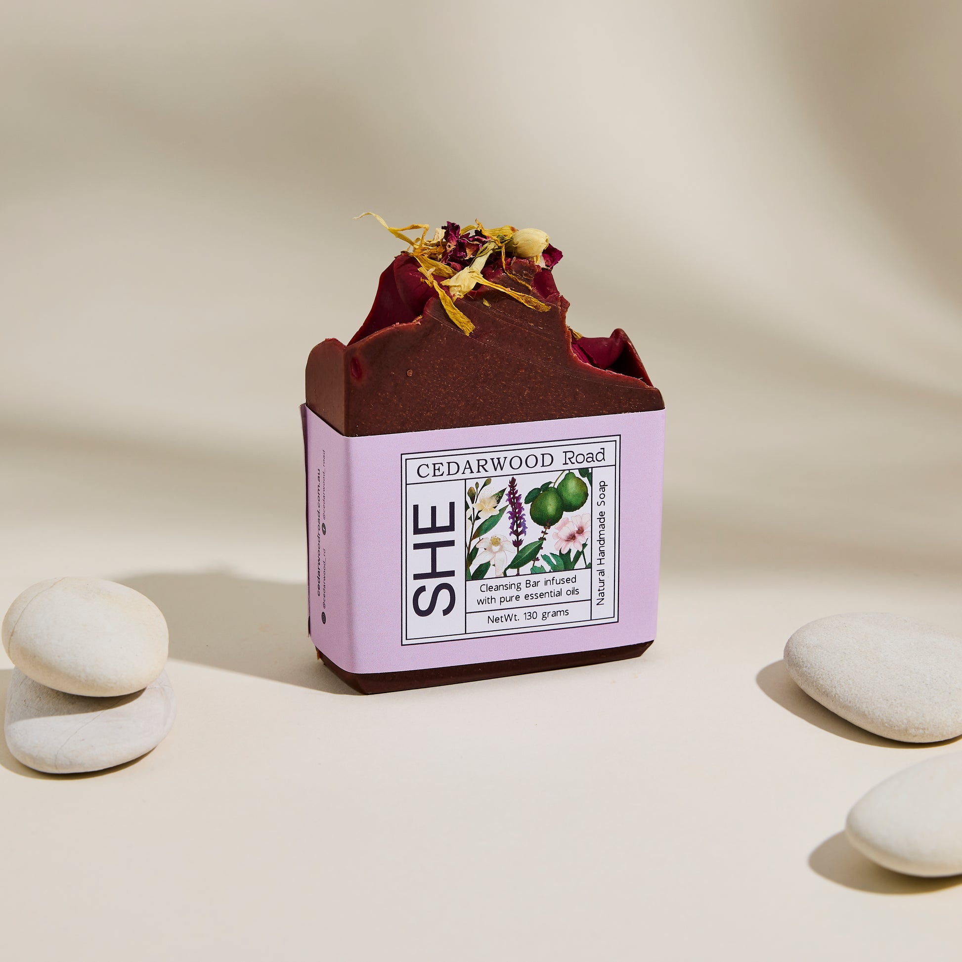 🩷 She Cleansing Bar infused with Rose Geranium, Clary Sage, Bergamot, Lemon Myrtle, Grapefruit & Himalayan Rhubarb Root Powder – Gently cleanses and revitalises the skin while grounding your spirit in nature’s purest form.
